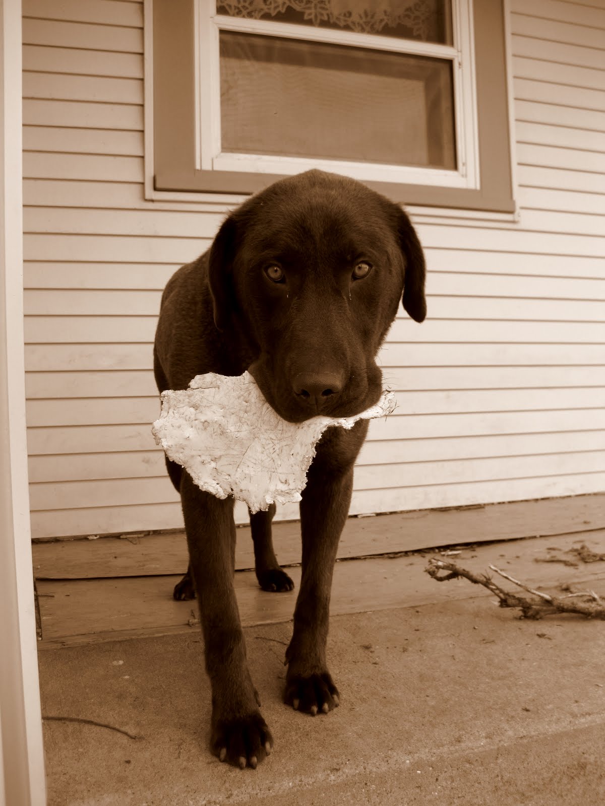 I’ve said it before, and I’ll say it again… our boy Reuben brings us lots of garbage, including but not limited to: cobs of corn, broken glass bottles, unidentifiable debris, and sticks… LOTS of sticks. I guess I never really took the “retriever” part of his breed seriously.