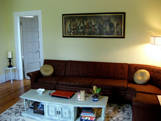 Secondly, I found this huge and somewhat abstract painting of the New York skyline. I love the colors and the sloppiness. And I love that it’s massive. Not many pieces of art survive in our living room without being swallowed by our extremely awesome 50’s sectional couch. But this painting totally pulls it off! TWO DOLLARS people… two dollars.