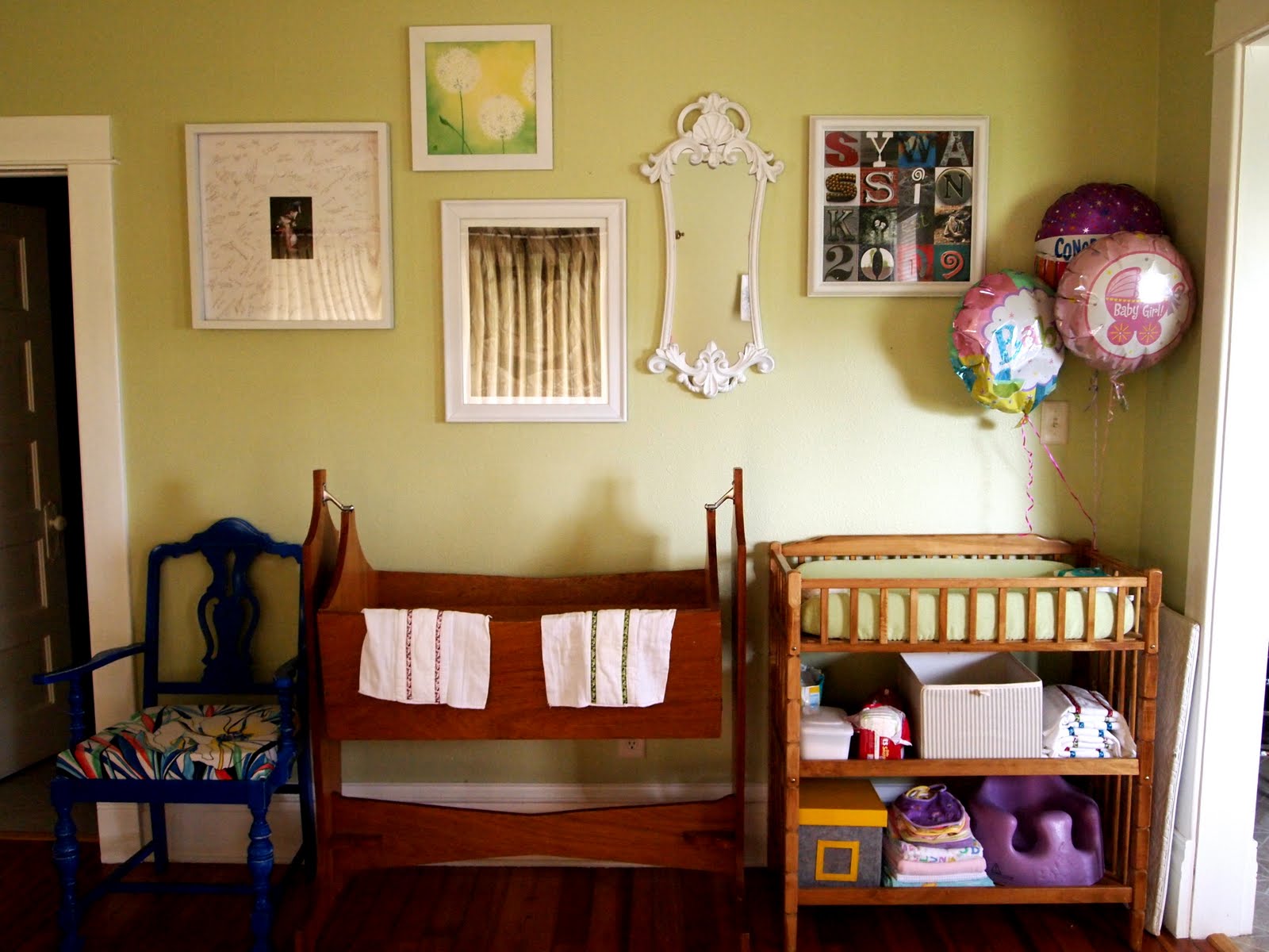 To minimize trips up our steep farmhouse stairs to get to the nursery, we’ve added some baby-themed furniture to one wall in our dining room. It makes a lot of sense for us. 🙂