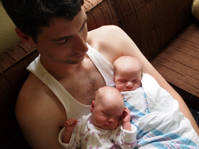 Great idea to make a baby outpost on the first floor! Your husband looks like a wonderful dad with his two sleeping daughters and you two have earned every bit of this happiness! Congratulations on having them home!