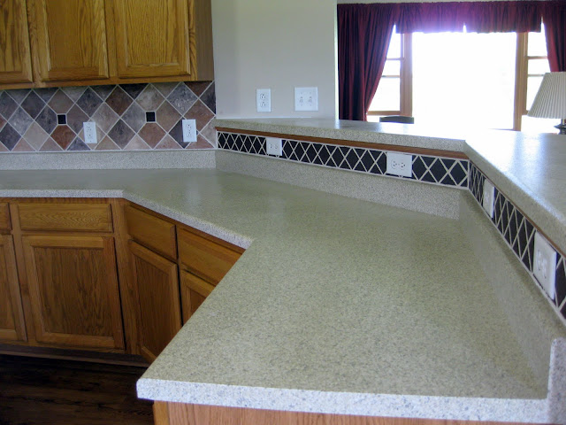 So anyway, Janet and her husband welcomed us into their home to give their kitchen a corner on the housing market and make it less…generic. Beings that this was the second backsplash we did that day, I was basically useless and worn out. I utilized Karen’s couch on a couple of occasions. So this one is Nick’s handiwork: