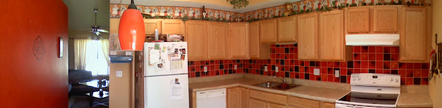 Our new friend, Kim, found it necessary to spice up her already spicy ‘Fat Italian Chef’ themed kitchen by hiring us to paint her backsplash. I’ve been hoping and praying for quite some time for someone to be even more obnoxious than I, and feel the need to do something crazy with the colors of their backsplash. The reason for this is, in part, to see how awesome it looks. But also to show the world how versatile the painting of backsplashes can truly be!! So by request… this is her ‘Red, Black and Orange’ backsplash!! I’m happy with the results, and we’re pretty sure our crazy friend Kim loves it too!