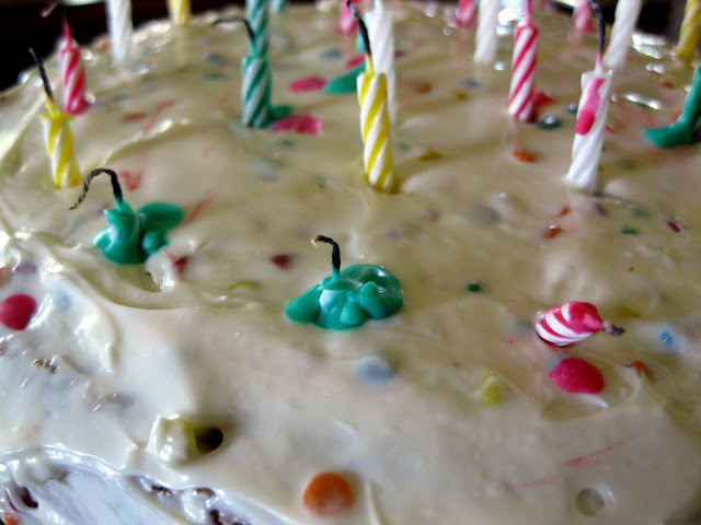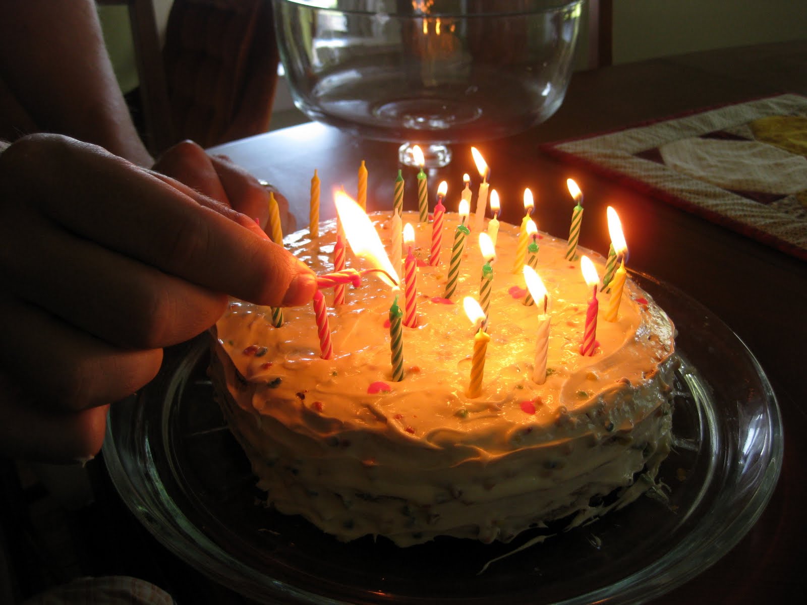 Yesterday, July 3rd, was my 28th birthday… and my sweet sweet husband took it upon himself to make it a great one!! He awoke early to bake me my favorite cake: Confetti Cake! It was the first cake he’s ever baked… EVER. And it was complete with 28 candles! We ate it for breakfast with coffee. Ain’t nothing better.