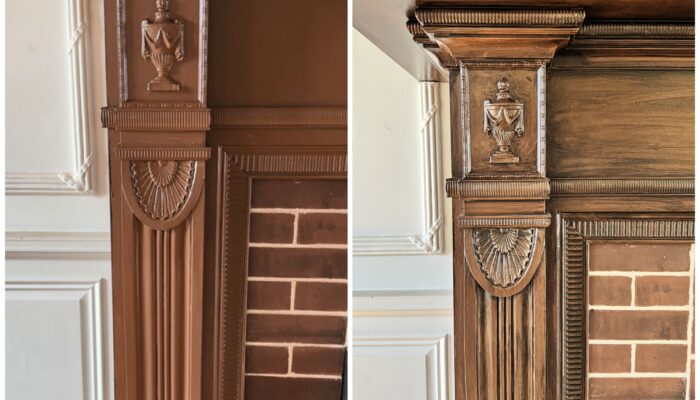 Paint a fireplace to look like REAL WOOD!