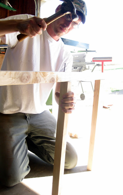 Let’s get to the point here: Inspired by Nick’s dad’s laundry-station-design, we got busy in the garage (Nick with a hammer, and me with a camera!)