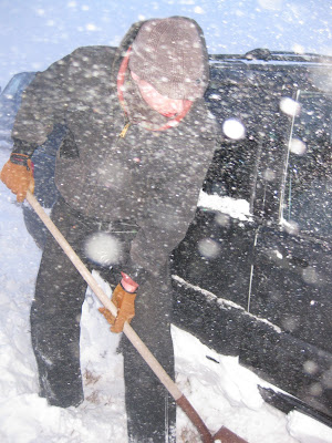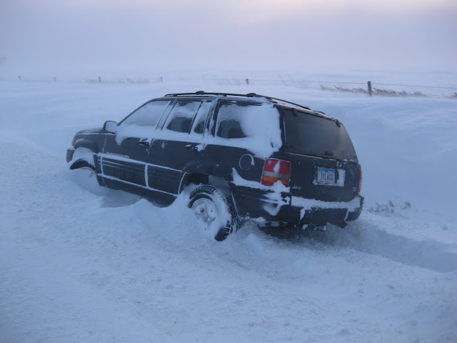 Jeff spent the day with Nick and I. We made pancakes and played cards, the Wii, and watched two movies. By the time the winds had died down and the blizzard warnings had ended, it was late afternoon, and the three of us bundled up to go find my Jeep.