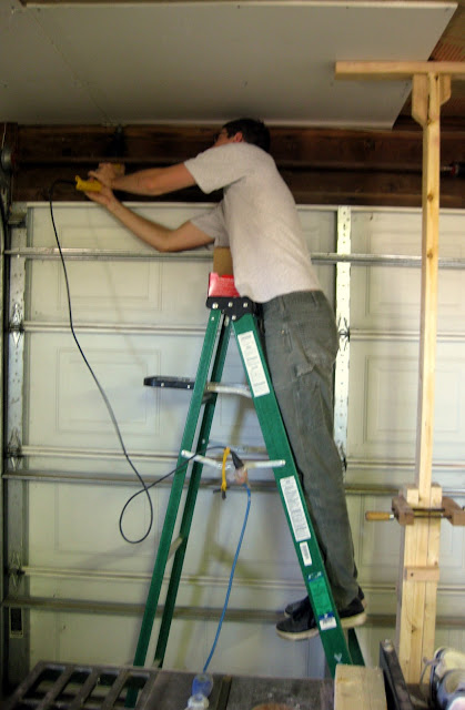 And Nick tackled drywalling the ceiling on Sunday, with occasional assistance from yours truly.