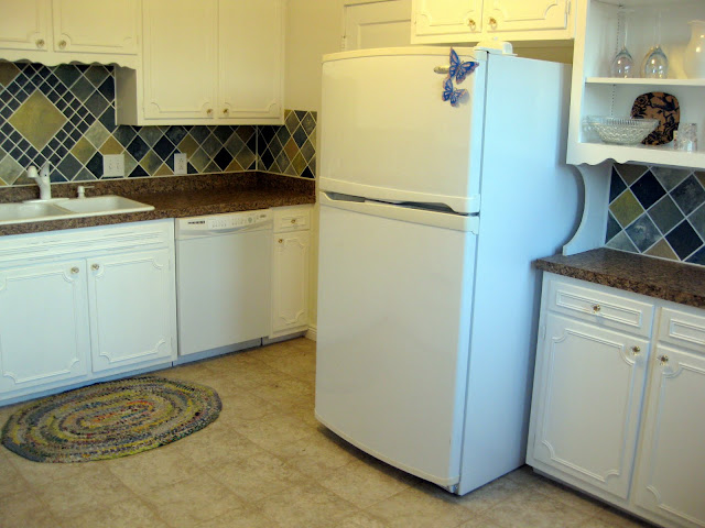 Well, it’s Monday… but the good new is, we have a new backsplash to share!! And this one was certainly not a chore. (even without the free pizza and beer!!). It was for my little bro and his wife, in their brand new kitchen… in their brand new house!! They’ve been homeowners for 3 days now, and have been busily unpacking and arranging things throughout their homestead. Though their 107 year old home is in excellent shape, there are a few things on their list of improvements that are taking a priority. One such thing is the very white, very sterile kitchen. Oh the possibilities!